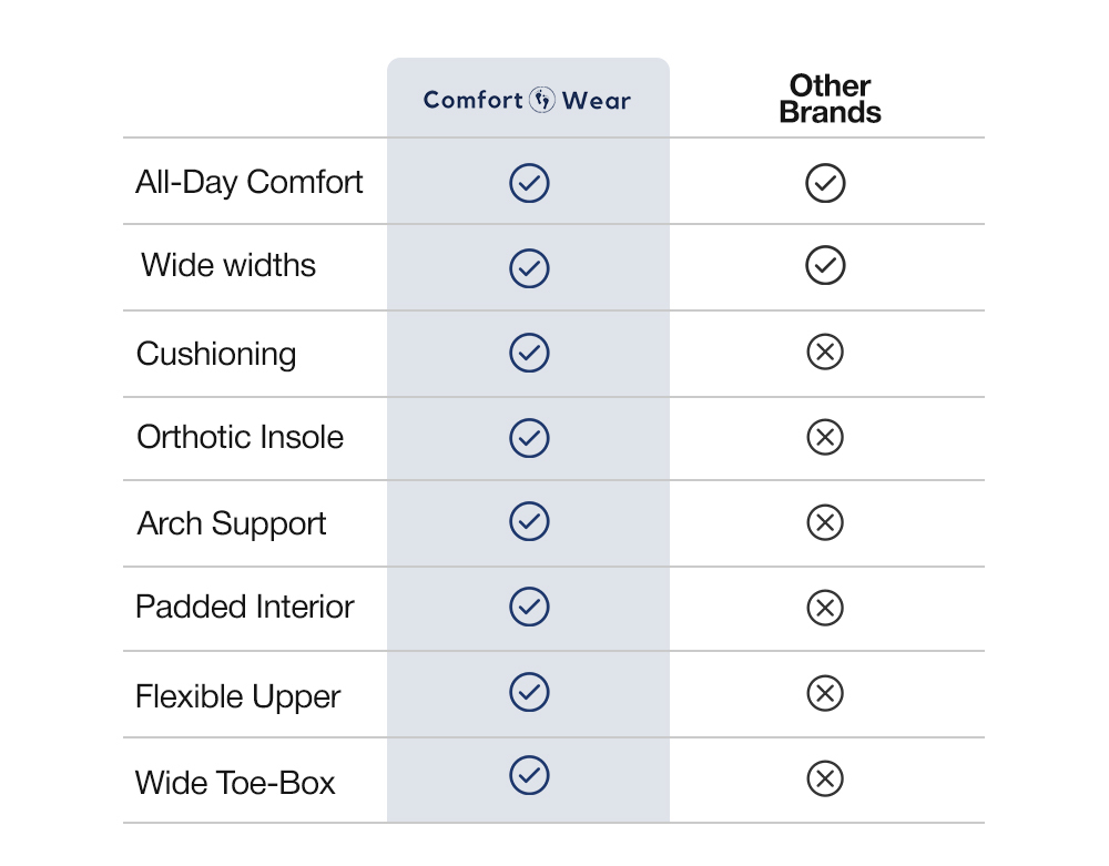 If you’re tired of shoes that look good but leave your feet aching, you’re in the right place. At ComfortWear, everything we make is designed to keep your feet feeling great, no pain, no pressure, just all-day support. Whether you’re on your feet for hours or just out running errands, our shoes help you move comfortably and pain-free from morning to night.