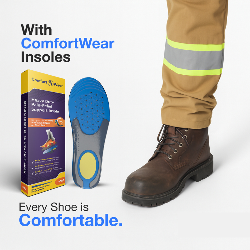 Steel-toe boots, safety shoes, and industrial footwear are notoriously stiff and heavy, often causing foot fatigue and hot spots. Our insoles are specifically engineered to work with those types of shoes. They provide extra arch and heel cushioning to relieve pressure from the rigid structure of work boots and minimize pain from the weight of the protective layers.